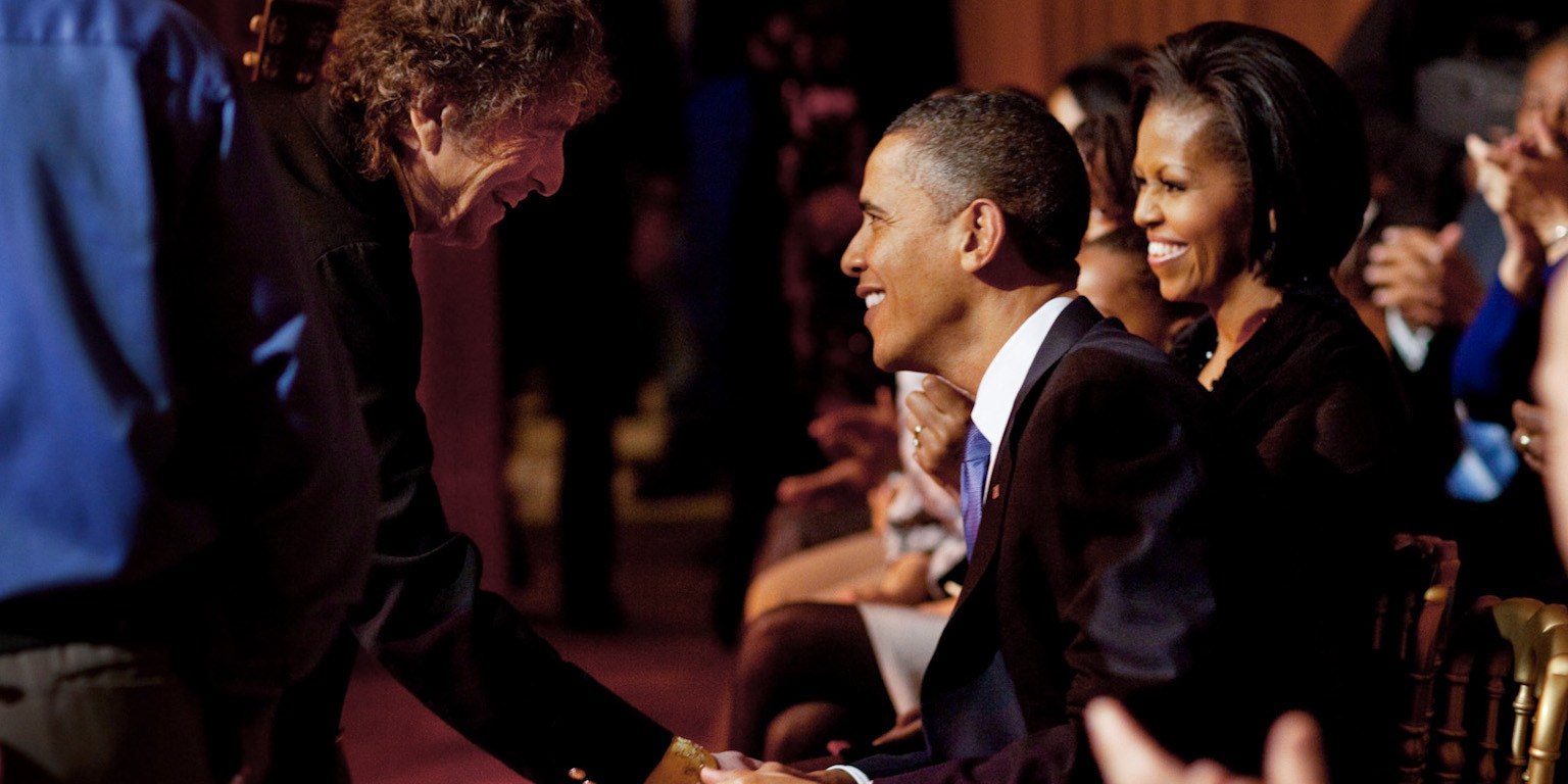 Dos años más tarde, en 2012, Obama fue más allá aún en su alago a la figura de Dylan cuando le otorgó la Medalla Presidencial de la Libertad, «el más alto honor civil del país». El discurso del presidente en la ceremonia celebró al músico de una manera grandiosa.